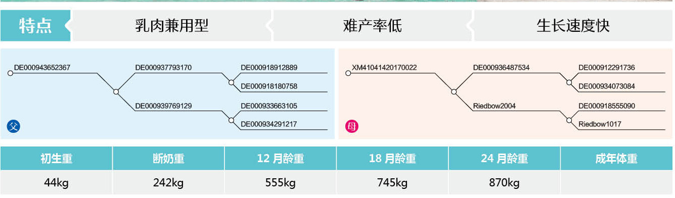 特點(diǎn):乳肉兼用型、難產(chǎn)率低、生長(zhǎng)速度快
